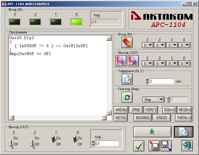 Программа ручного управления модулем с возможностями автоматизированного или автоматического управления модулем, на основе языка скриптового управления коммутатором. Таким образом обеспечивается программирование логики обработки входных событий и правил коммутации на основе встроенного логического языка. См также описание языка.