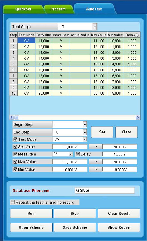 Автоматическое тестирование по заданной программе с сохранением результата тестирования в файл базы данных.