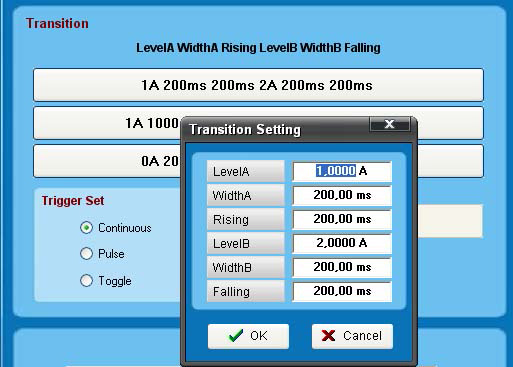 Панель управления динамическим режимом электронной нагрузки: