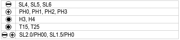 Насадка "крест" (Phillips) - крестообразная, самовыталкивающаяся (для предотвращения перетягивания винта). Устаревший стандарт, но широко применяется.