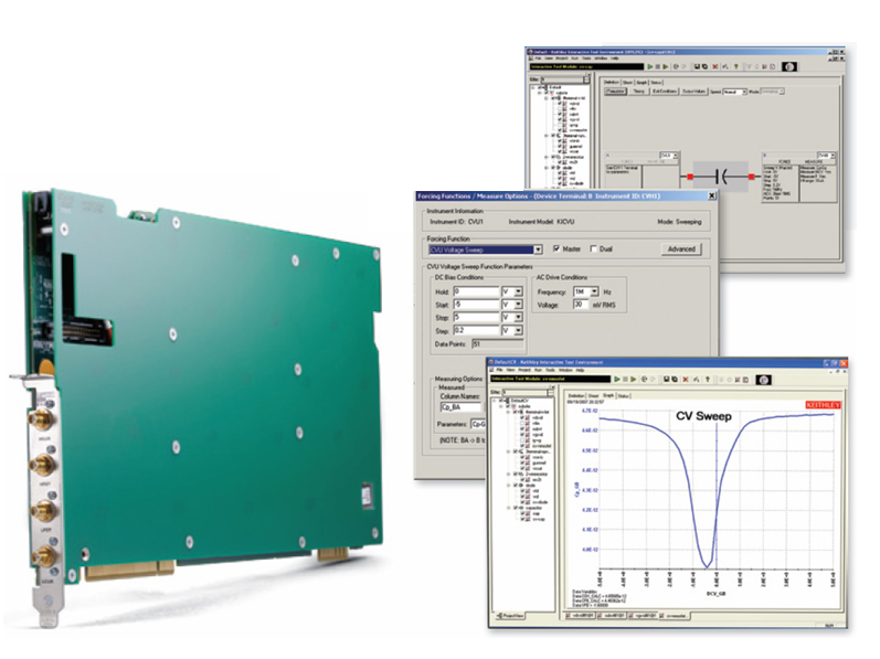 - Измерение вольт-фарадных (C-V) характеристик с дифференциальным смещением ±60 В и в диапазоне частот от 1 кГц до 10 МГц, а также в квазистатическом режиме и ультранизкочастотную CV-метрию